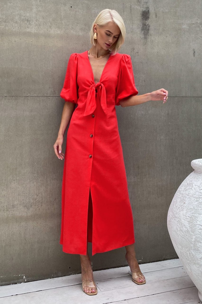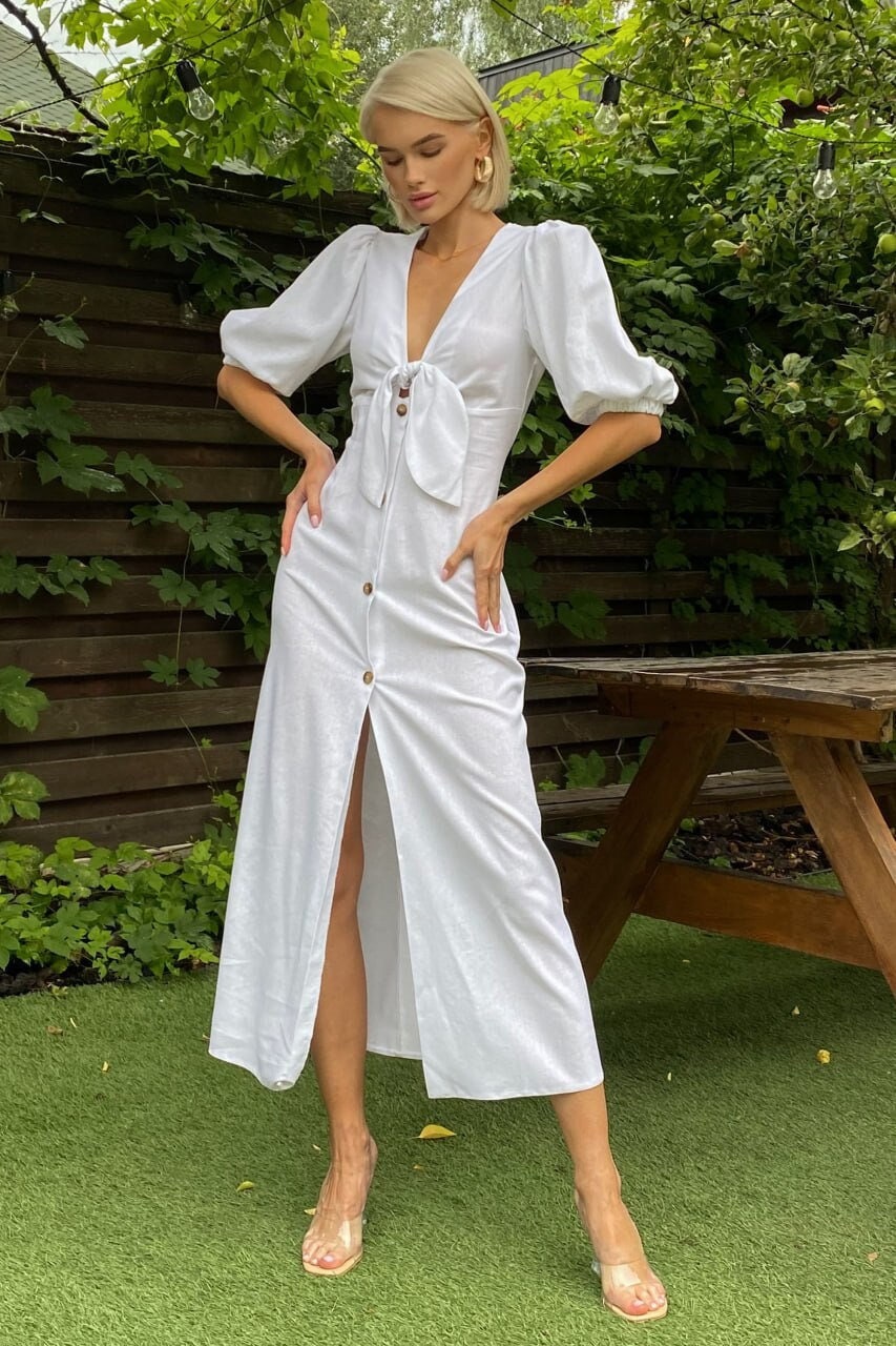 Linen Dress, Elegant Linen Dress, Deep V neck Linen Dresses, Linen Midi Dress, Button front Dress, Long Linen Dresses, Summer Dress, Linen Clothing for Women