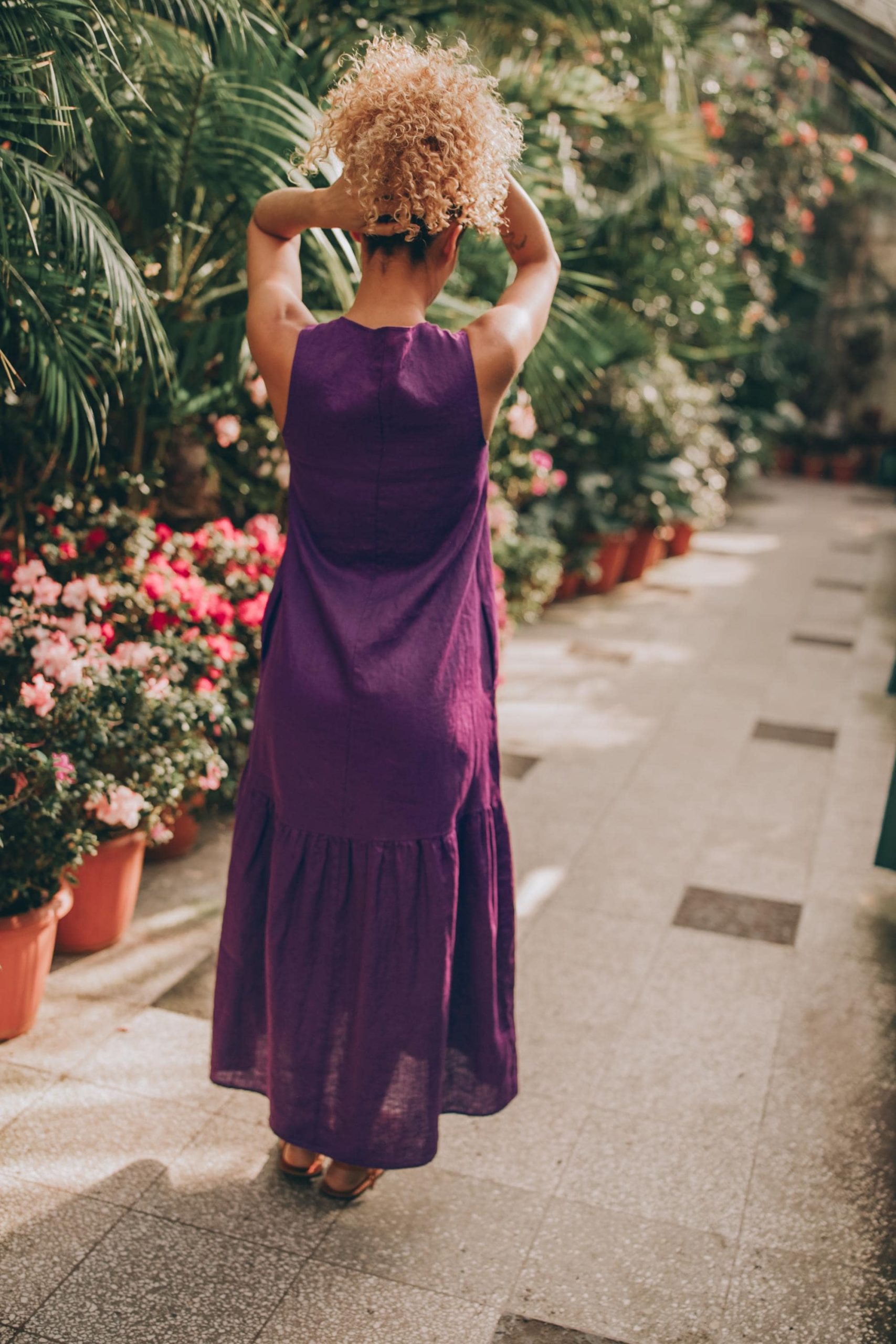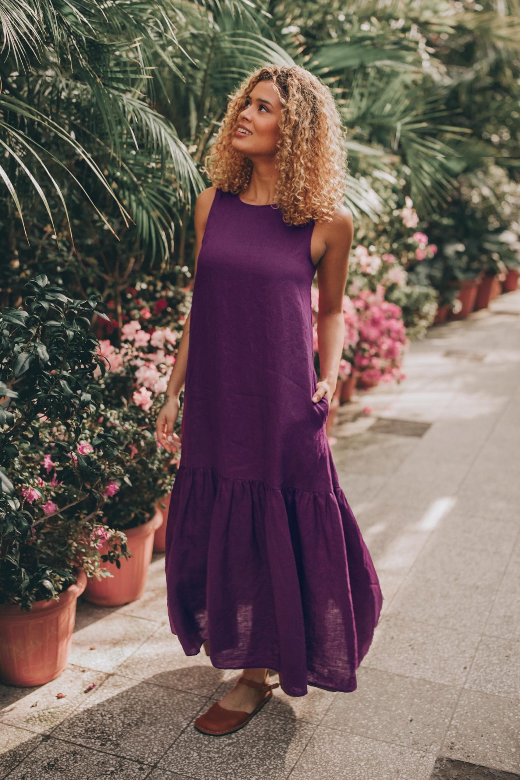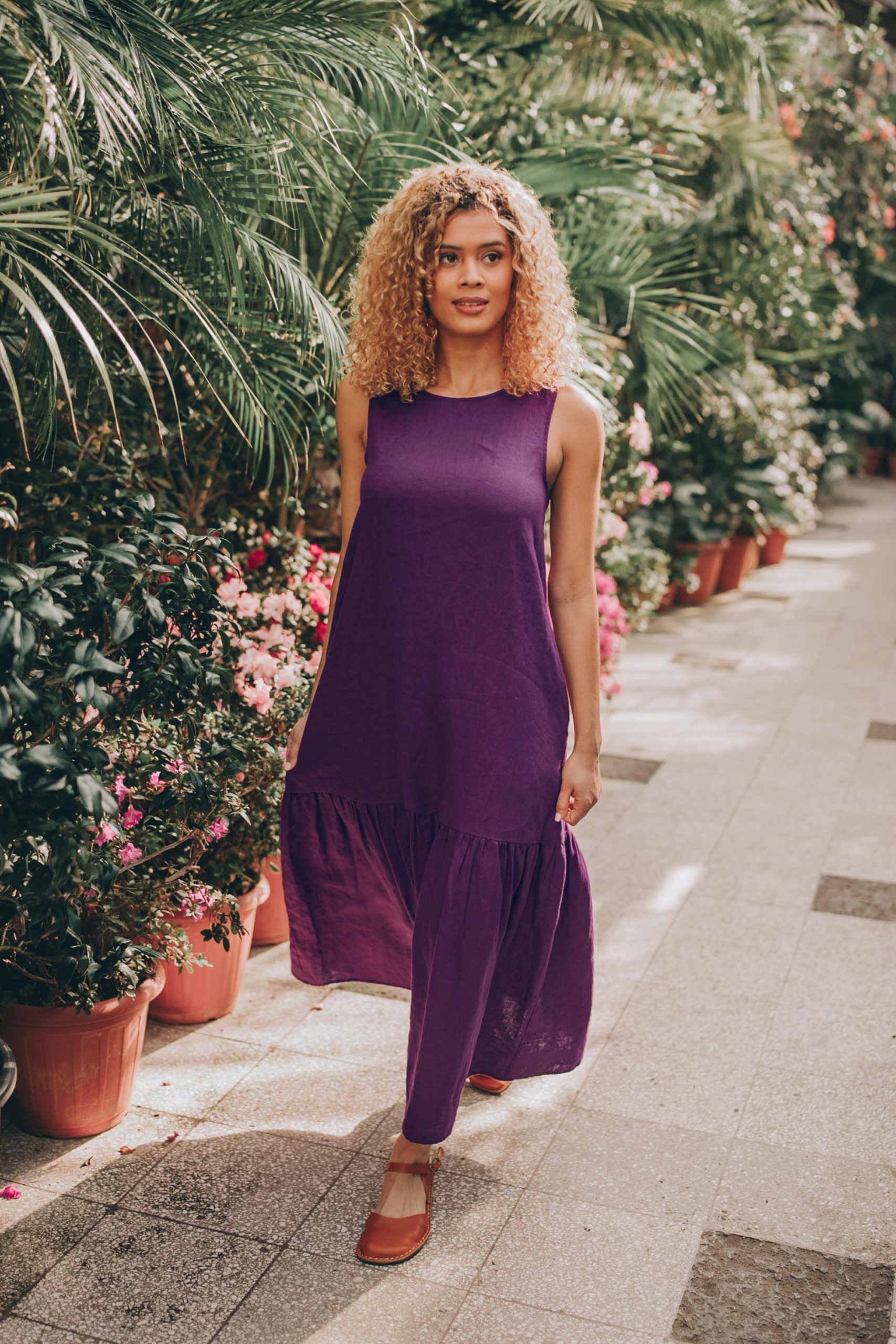 Be the first to review “Sleeveless Linen Midi Dress: Purple Tiered Dress With”